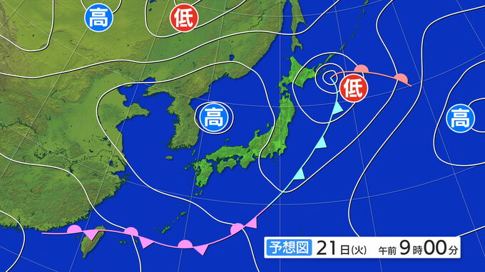 20日(月)は、本州の南海上を通る低気圧などの影響で、