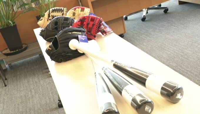 贈られた野球用品は、市内5つの学童野球クラブに11日から順次配られます。