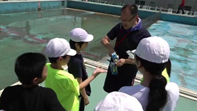 石川県輪島市門前町ではボランティアと小学生たちが一緒になって学校のプール清掃を行いました。