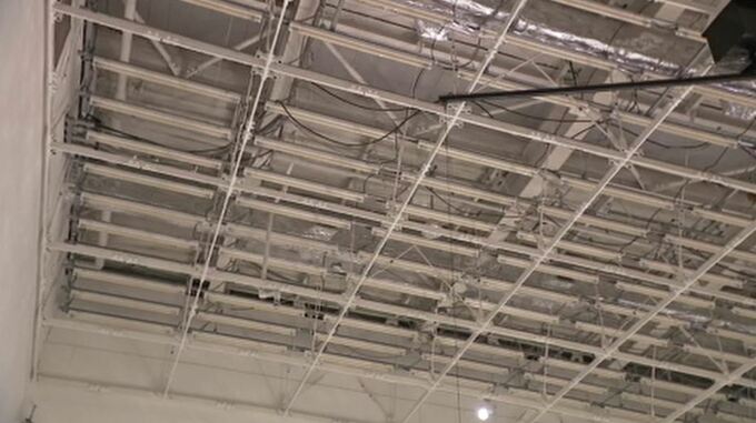 石橋弘崇キャスター「地震で天井のガラスが剥がれ落ち現在はむき出しの状態となっています」