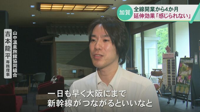 山中温泉旅館協同組合・吉本龍平専務理事「どうしても交通インフラとなると自分たちの力ではなかなかできない部分があるので、1日も早く大阪にまで新幹線がつながると良いなと」