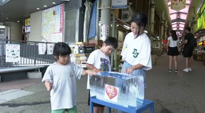 石川県内、連日厳しい暑さが続いている中、金沢市の近江町市場では「氷柱」が設置され、買い物客らがひと時の涼を感じています。