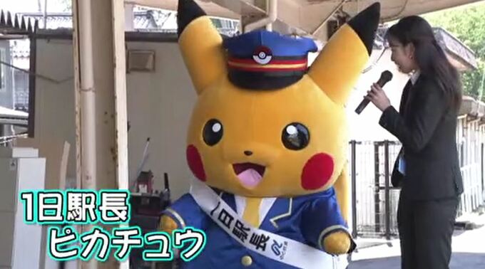 1日駅長に任命されたピカチュウも登場!最初の便には整理券を受け取った70人が乗り込みました。