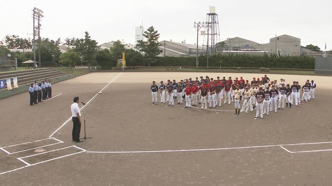 ことしで7回目となる大会には、金沢市早朝ソフトボール連盟に加盟の4チームと、富山・福井の3チームが参加し、小立野クラブの林公一郎さんが「オリンピックに負けない熱い試合をします」と、力強く選手宣誓しました。