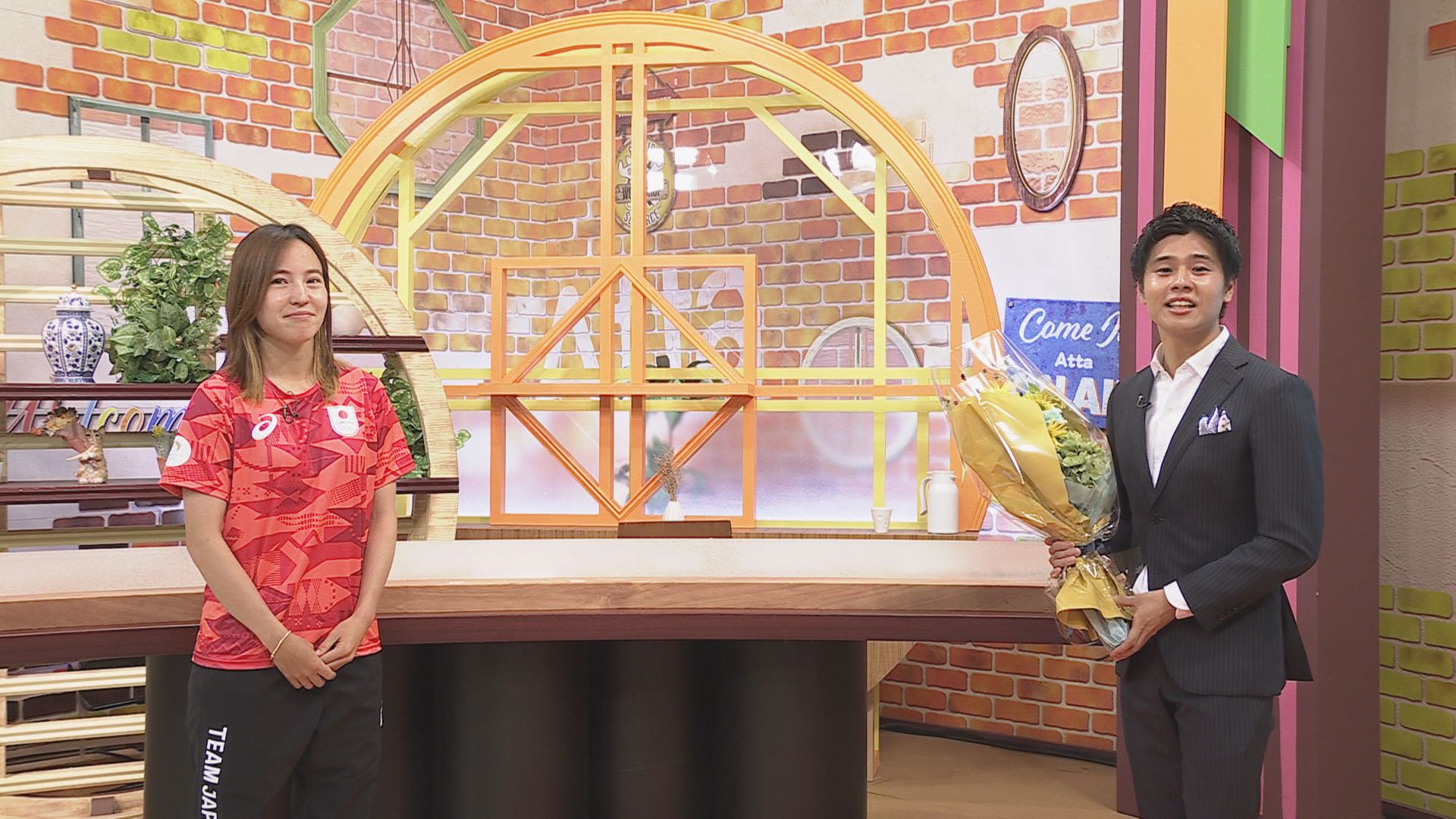 MRO北陸放送・牛田和希アナウンサー「改めてスタジオには、昨日パリから帰ってきたばかりのサッカー女子日本代表なでしこジャパンの北川ひかる選手をお迎えしています。よろしくお願いします」