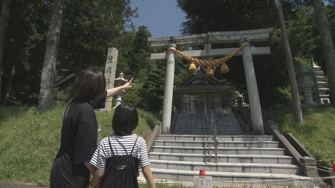 ひび割れたままの鳥居。今年秋に行われる祭りは神事のみとなる見通しで、楽しみにしていた子ども太鼓を叩くことはできません。