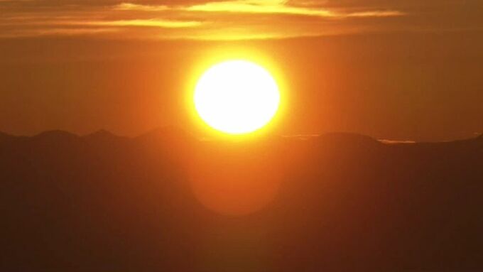 午前5時6分、朝日がゆっくりと顔を出し山頂を明るく照らします。