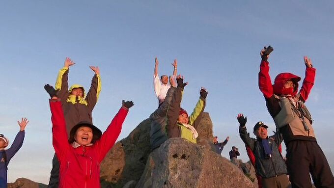 登山客「バンザーイ!!」「急に明るいのがでてきてわぁーってなった」「とてもきれいですばらしくて感動しました。涙が出るくらい」