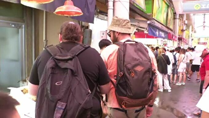 「観光客に大人気の近江町市場ですがお盆休みのきょうはさらに混雑していてまっすぐ歩くのが難しいくらいです」