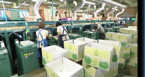 JAの集出荷場には、6日、およそ2000玉が運び込まれ、色や網目の美しさなど等級ごとに選別して箱詰めする作業が行われました。
