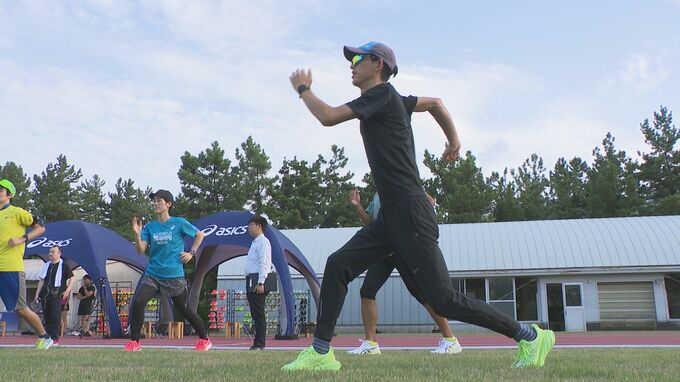 ランナーたちは走り方のフォームなどについて細かく説明を受けながら、実際に走ってその感覚を確かめました。