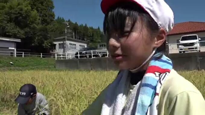 稲の刈り取りの様子「とったどー!」