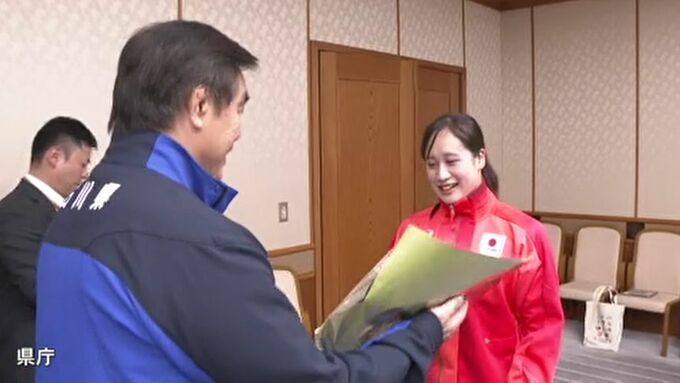 パリオリンピック™・アーティスティックスイミングに出場した石川県白山市出身の木島萌香選手。10日に馳浩 石川県知事を表敬しマイナー競技の普及へ意欲を語りました。