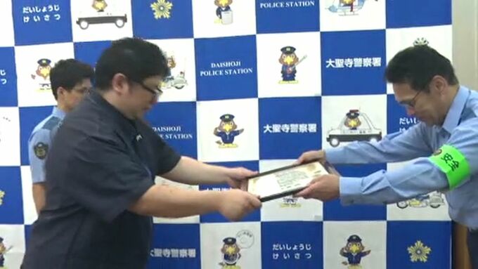 13日、大聖寺署で行われた贈呈式では、木谷力署長から木下店長に感謝状が贈られました。