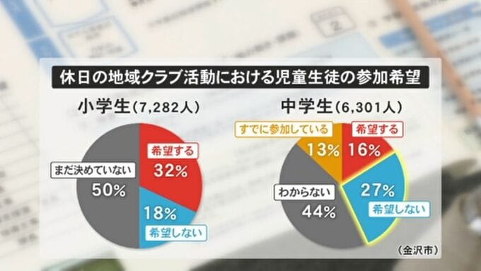 市が小中学生を対象に調査したアンケートでは、休日の地域クラブへの参加希望について、中学生は「希望しない」という回答が「希望する」を上回る結果となっています。