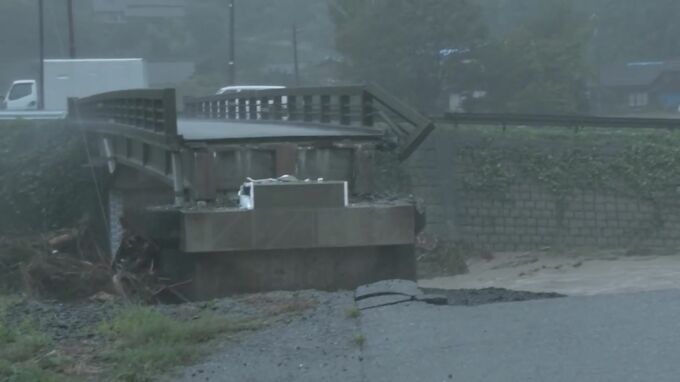 JNN取材団・佐々木嵐士記者「こちらの奥にある住宅4棟が、きのうの雨で川が増水した影響で流されたということです」