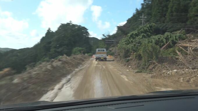 JNN取材団・高木健至「両脇を土砂が埋めつくしています。道路にもまだ泥があり、路面の状況が非常に悪いです」