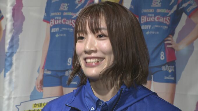 PFUブルーキャッツ石川かほく 細沼綾キャプテン「よりパワフルで迫力のあるバレーボールを体感できると思うので、ぜひそれを近くで見てほしい。チーム全員で初代女王を目指して頂点への挑戦をしていきたいと思います、応援よろしくお願いします」