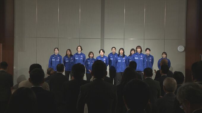 石川県かほく市を拠点に活動するバレーボールチーム、「PFUブルーキャッツ石川かほく」の新リーグ開幕を前にしたキックオフパーティーが4日夜、金沢市内で開かれました。