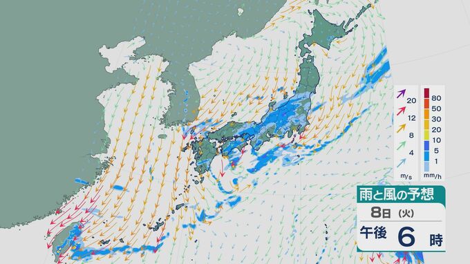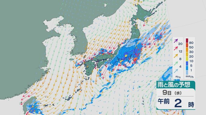 西日本では8日夜のはじめごろから雨がやみそうですが、9日の未明にかけては東海や関東で雨が強まるところがある見込みです。