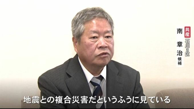 南章治候補「とにかく能登の復興の関係で言うと、豪雨災害も起きたことで地震との複合災害だというふうに見ている。ですので中途半端ではなく本格的に国が乗り出して道路も含めてやらないと、もう地方自治体のレベルでは解決できないというのは、この前の珠洲市に入った時も実感した」