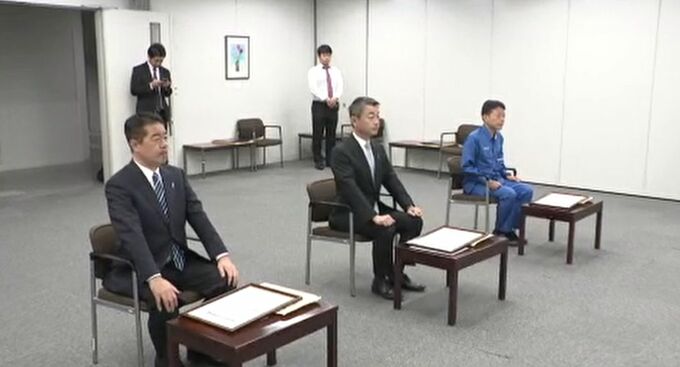 県庁で行われた付与式には、石川1区の小森卓郎さん、石川2区の佐々木紀さん、石川3区の近藤和也さんが出席しそれぞれ当選証書を受け取りました。