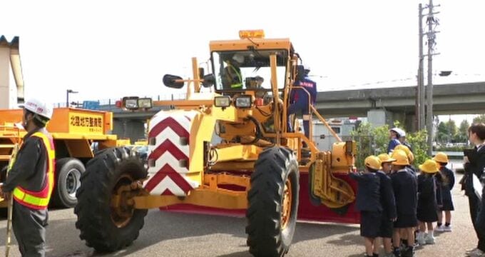 国道8号沿いの金沢除雪基地では、出動式が行われ、委託を受けた石川県内の除雪業者の代表が決意表明し、近くの鞍月小学校の1年生から除雪車の「安全キー」が手渡されました。