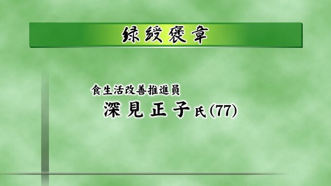 長年の社会奉仕活動をたたえる緑綬褒章に選ばれたのは、食を通した健康づくりでボランティア活動に取り組んできた食生活改善推進員の深見 正子さんです。