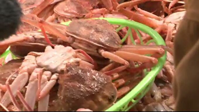 9日、今シーズン初めて水揚げされたズワイガニが、ようやく店頭にお目見えしました。