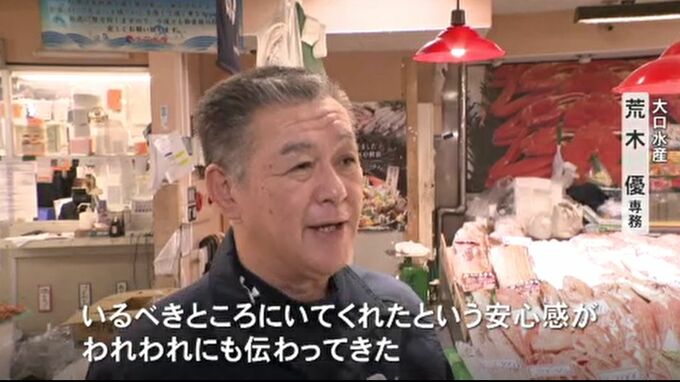 大口水産・荒木優専務「漁場にカニはおらんのじゃないかなと輪島の漁師さんも心配していたと思うけど、行って網引いたら多少なりともおるんで、これからもっともっと増えてきて、いるべきところにいてくれたという安心感が我々にも伝わってきた」