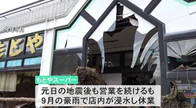 もとやスーパーは元日の地震のあとも、地域住民の心の拠り所として営業を続けてきましたが、9月の豪雨で店の中が水に浸かったため、休業を余儀なくされました。