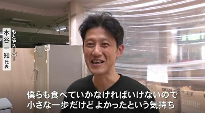 「商品を並べる作業を僕らもずっと毎日やってたんで、懐かしいなという気持ちと僕らも食べていかなきゃいけないんで小さな一歩ですけどよかった。こんなわずかな品揃えの中でも気持ちで買ってくださるのはあったかい土地柄だなと思う。今度は30日はね、お客さんをびっくりさせたい。安さや価格と商品力で」