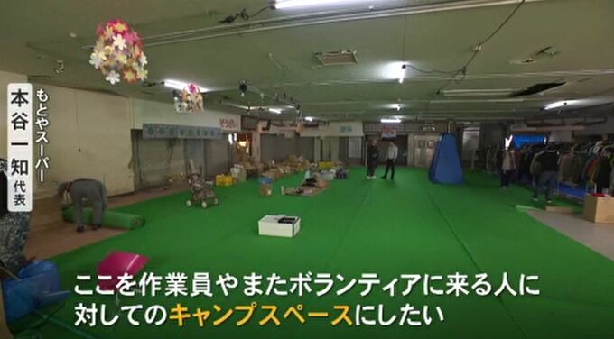 もとやスーパー 本谷一知代表「ここを作業員さんやボランティアに来たいって言う人に対してのキャンプスペースにしたい。冬場でもある程度寒さをしのげるような感じでテントを張りたい」