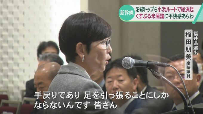福井県選出・稲田朋美衆院議員「ここからほかのルートを検討するということ自体が、この北陸新幹線の最後の1ピースを埋めることについて、手戻りであり足を引っ張ることにしかならないんです。みなさん」