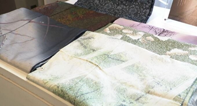 国指定の伝統的工芸品にも認定されている、石川県の白山麓に伝わる「牛首紬」の展示販売会が15日から金沢市で開かれています。