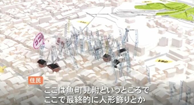 目的は地震で失われた街の景色と住民のふるさとの記憶をジオラマ模型で再現すること。
