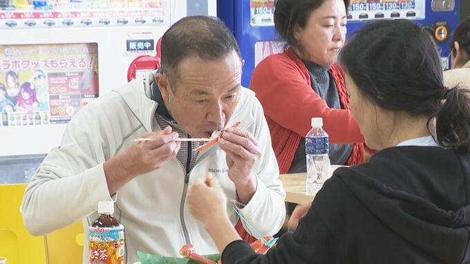 イートインコーナーでは、買ったばかりのカニを堪能する観光客の姿も。