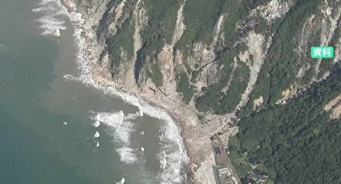 元日の地震に加え9月の豪雨により、大規模な土砂崩れや路面の崩落などが確認された国道249号。