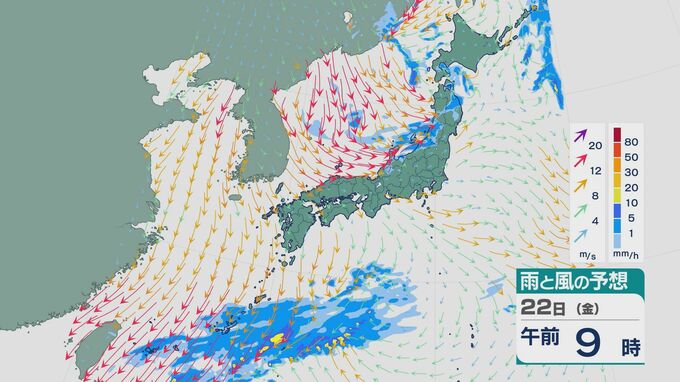 日本海の低気圧が東に進むにつれ、22日(金)は北陸では風も強まりそうです。
