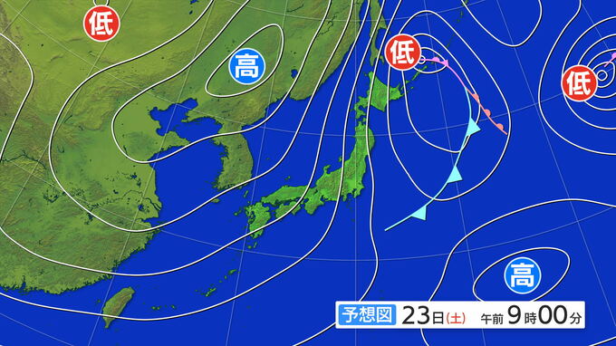 次第に西高東低の気圧配置になり、週末にかけて日本海側を中心に雨と風が強まる見込みです。