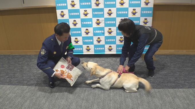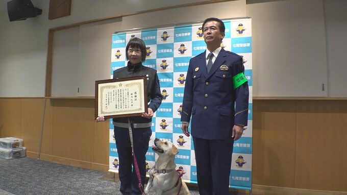 七尾警察署では、堀内さんに感謝状が贈られ、輪ちゃんには副賞の「鶏ささみのおやつ」が贈られました。