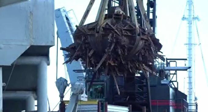 船で輸送されるのは七尾市の公費解体で発生した「木くず」で1隻につき2000立方メートル、重さおよそ1200トンのゴミを一度に運搬する事ができます。