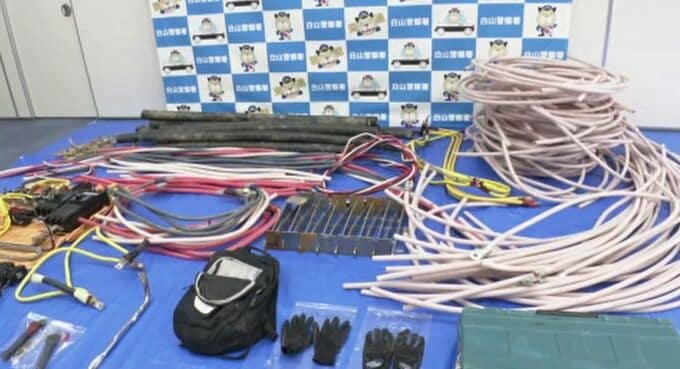 記者リポート「ボリビア国籍の男ら2人は、電動ノコギリなどを使ってケーブルを切断して盗んだとみられています」