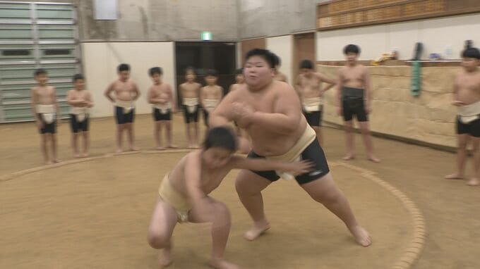 大の里が通っていた津幡町の少年相撲教室では、未来の横綱を目指す子どもたちの練習にも熱が入ります。