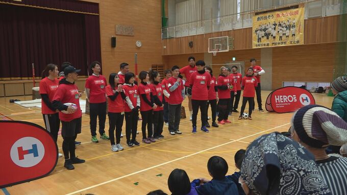 このイベントはアスリートの社会貢献活動を推進する「日本財団HEROs」が企画したもので、ラグビー元日本代表の五郎丸歩さんなど約30人のアスリートが輪島市の門前中学校を訪れました。1日は100人を超える住民が参加し、細いベルトの上でバランスを楽しむ「スラックライン」や「ボッチャ」などをアスリートたちと一緒に楽しみました。