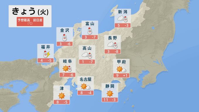 4日の北陸は、広い範囲で雷をともなって雪が降るでしょう。