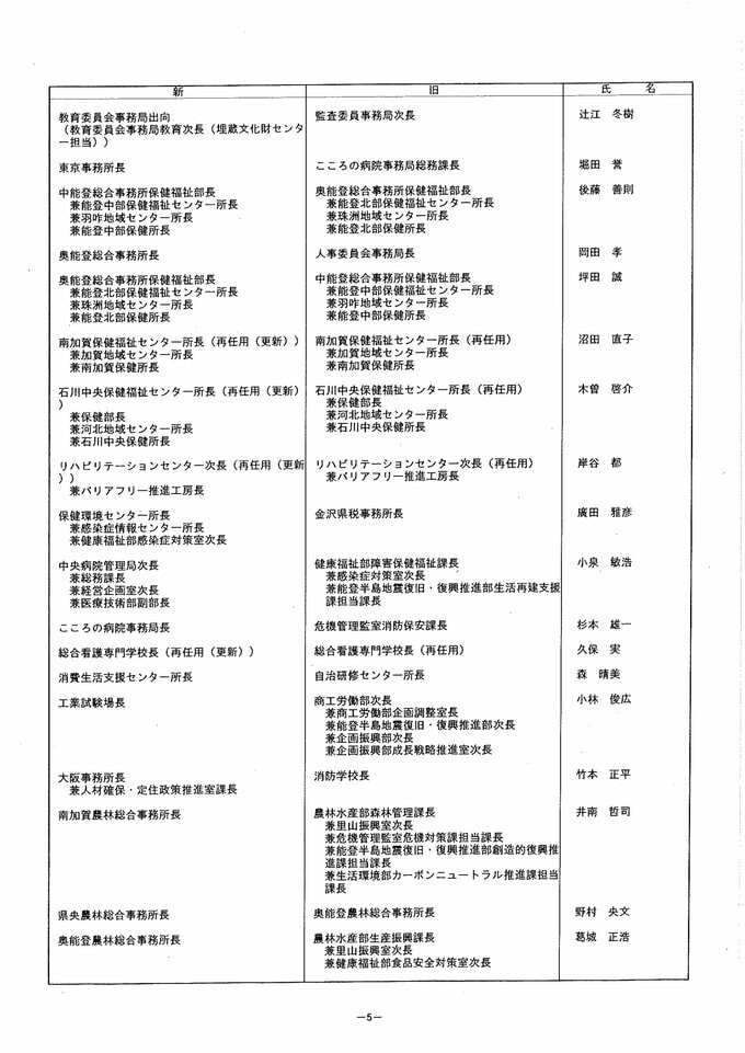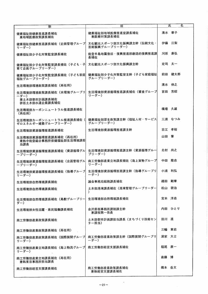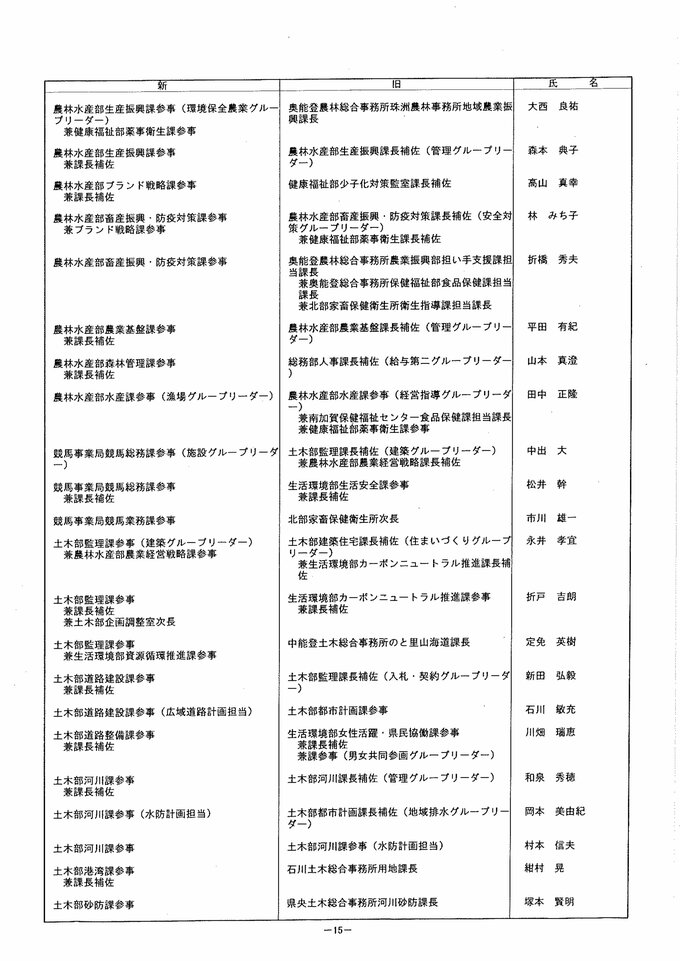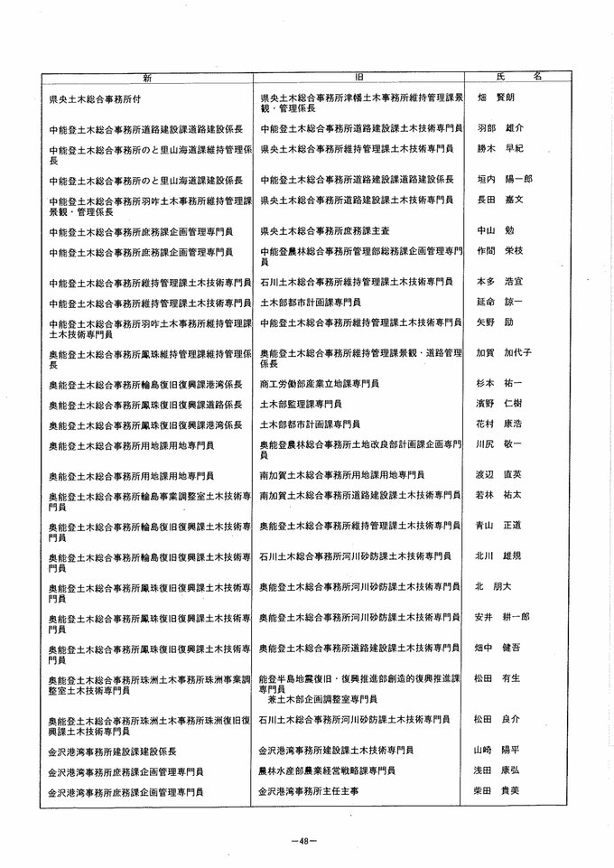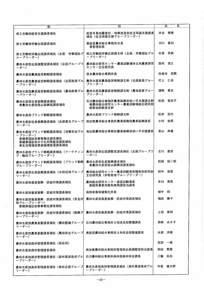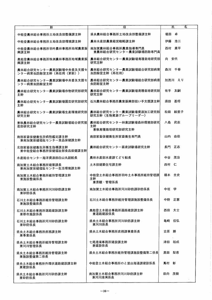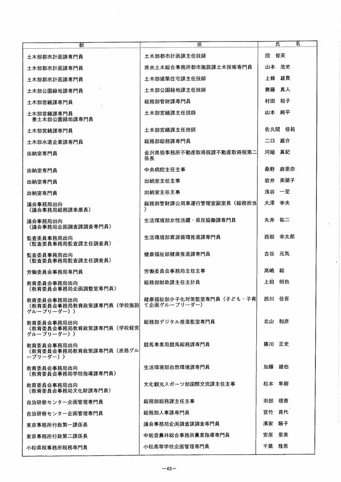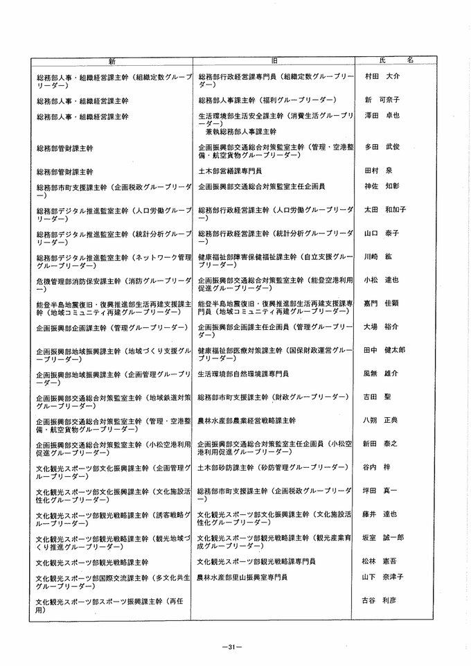 石川県 県職員人事異動 女性管理職が過去最多の15.4% 災害対応力強化へ 危機管理監室を「危機管理部」に改組【2025年度 令和7年度 全員掲載】 2025年3月27日(木) 18:00 石川 【画像】石川県職員の人事異動一覧