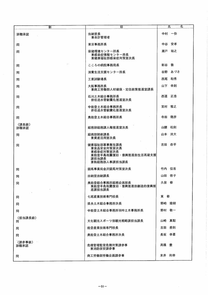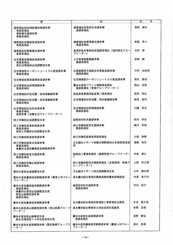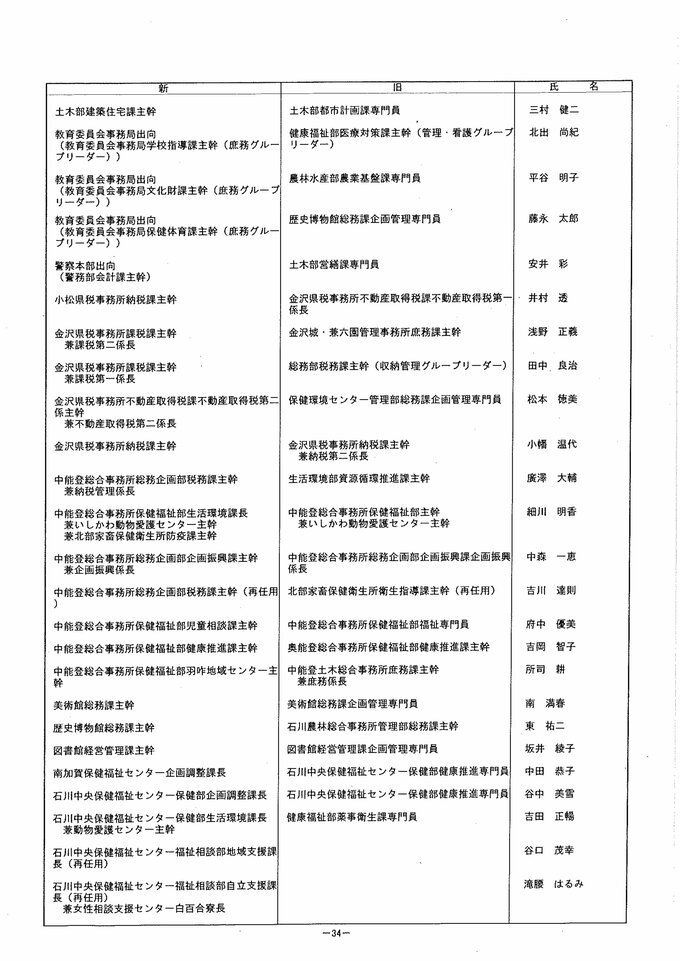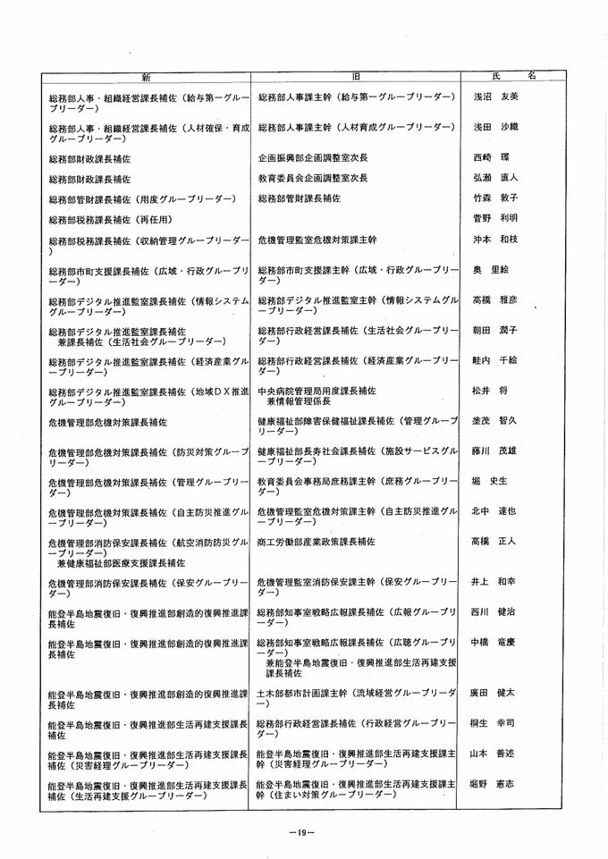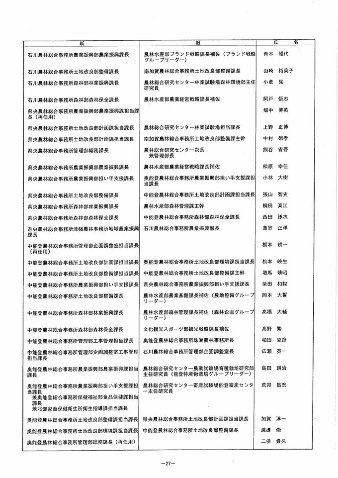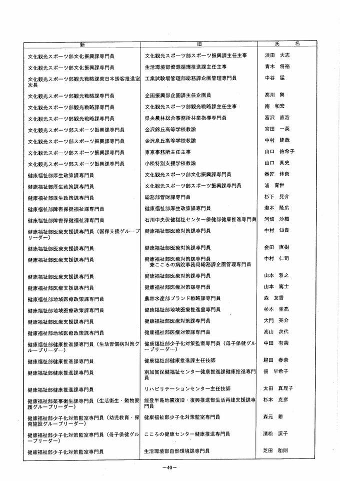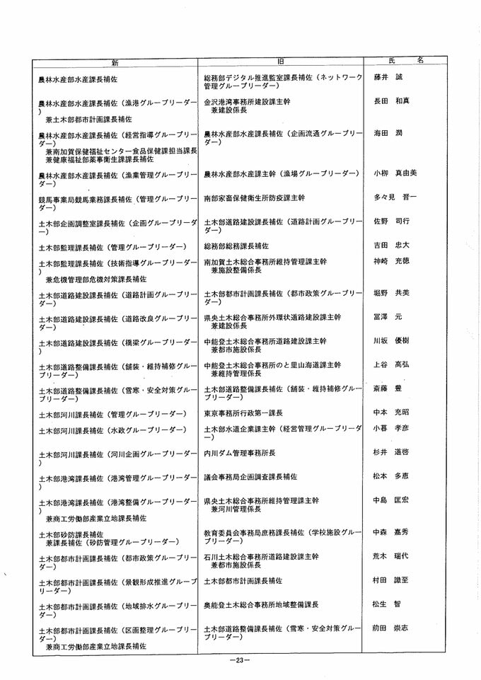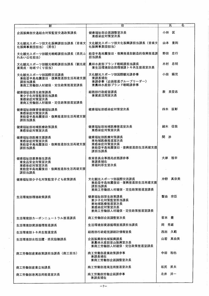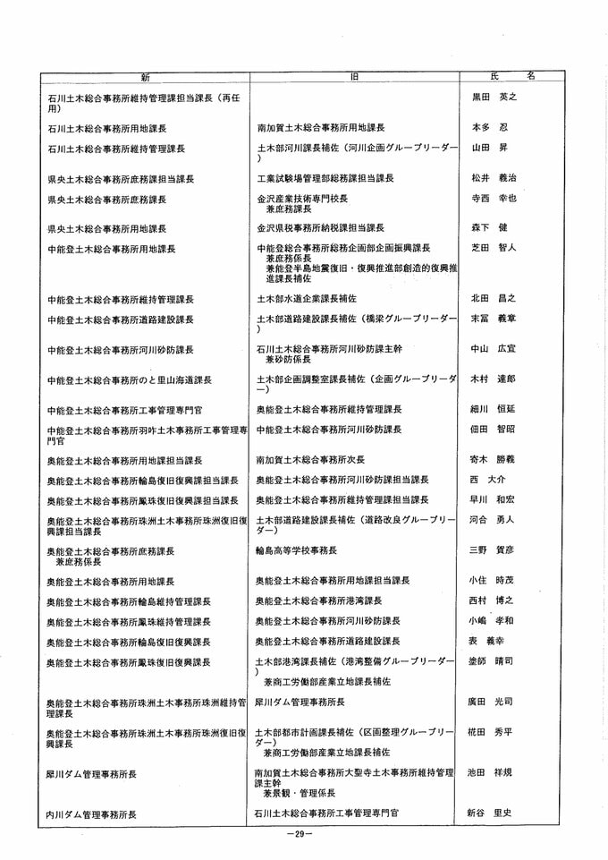 石川県 県職員人事異動 女性管理職が過去最多の15.4% 災害対応力強化へ 危機管理監室を「危機管理部」に改組【2025年度 令和7年度 全員掲載】 2025年3月27日(木) 18:00 石川 【画像】石川県職員の人事異動一覧