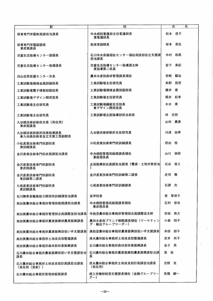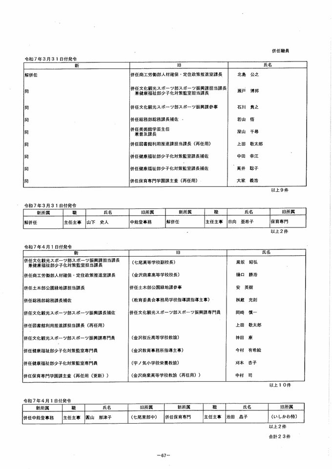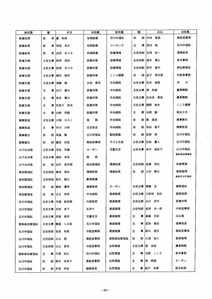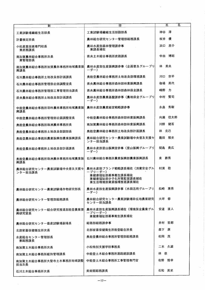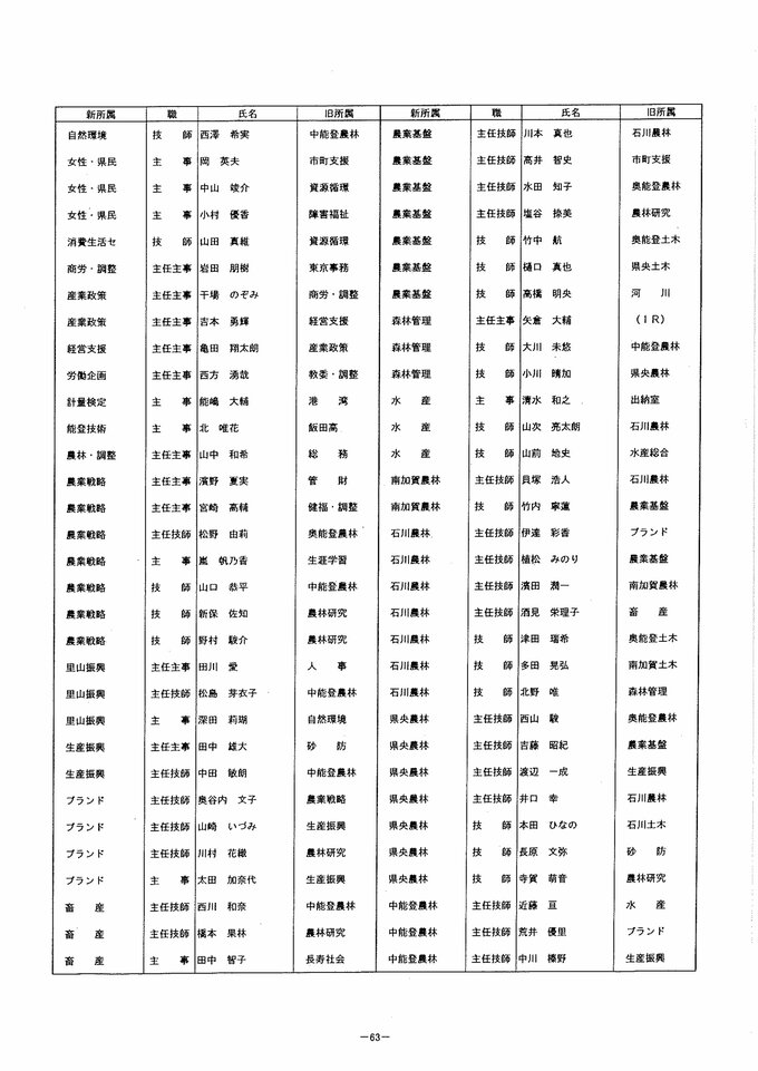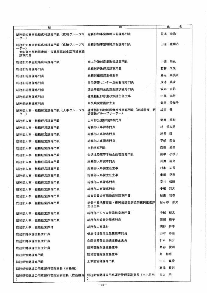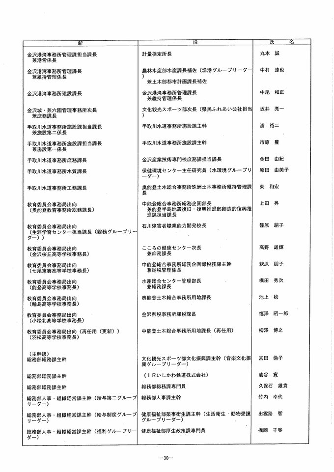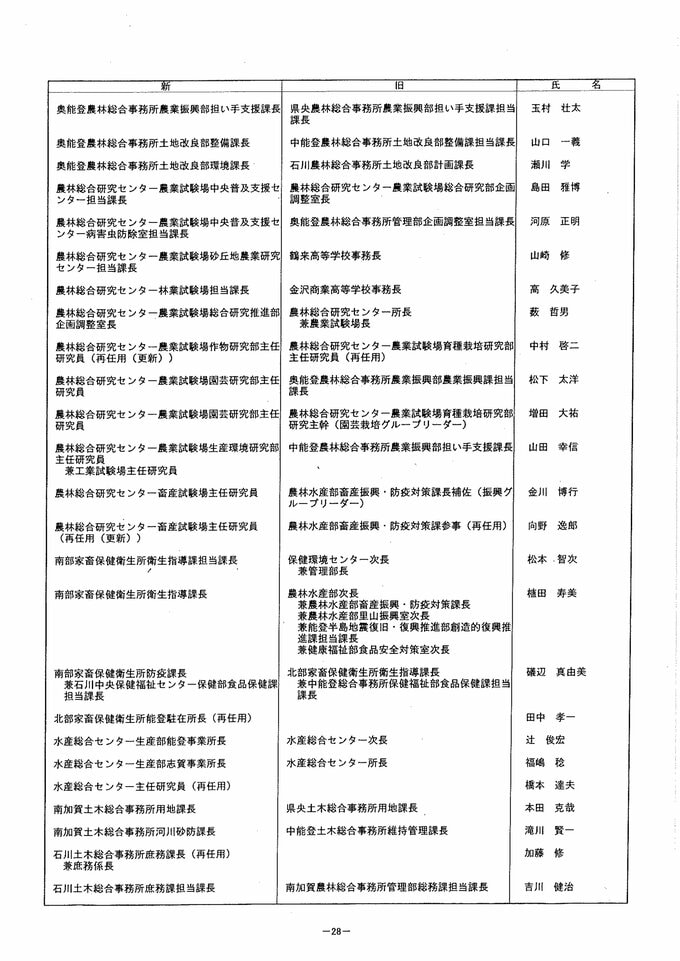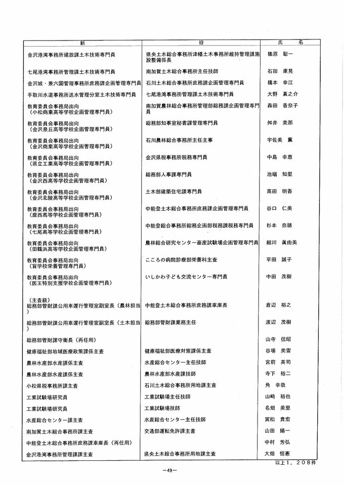 石川県 県職員人事異動 女性管理職が過去最多の15.4% 災害対応力強化へ 危機管理監室を「危機管理部」に改組【2025年度 令和7年度 全員掲載】 2025年3月27日(木) 18:00 石川 【画像】石川県職員の人事異動一覧