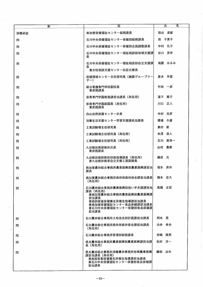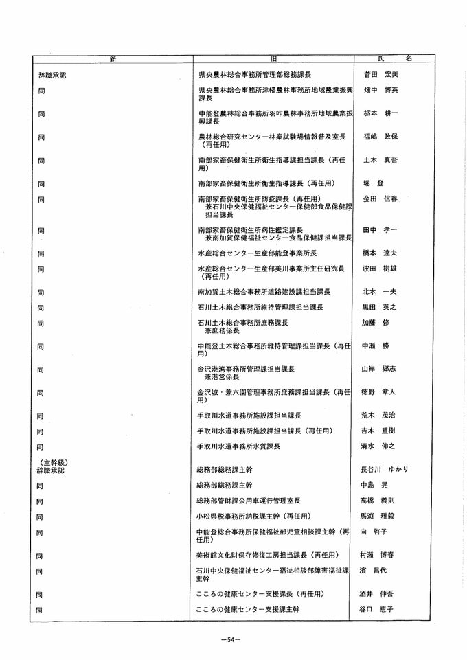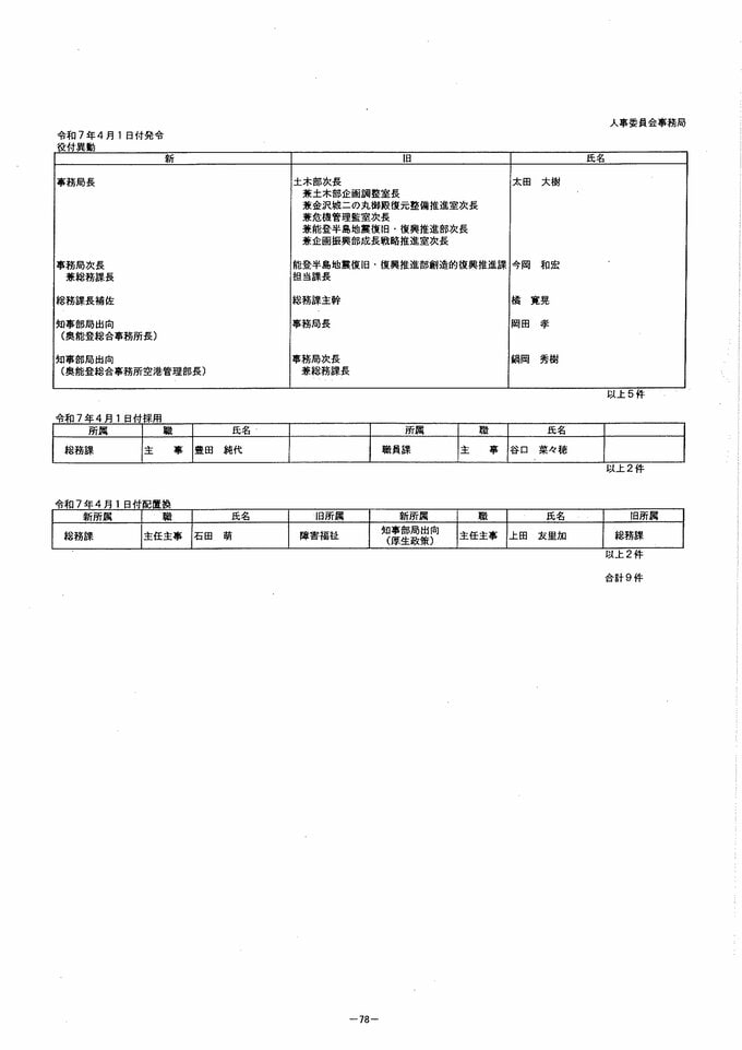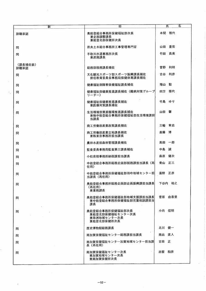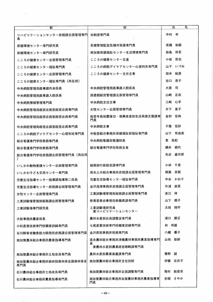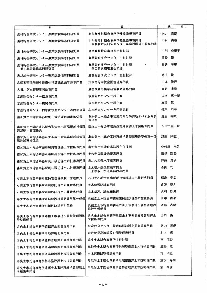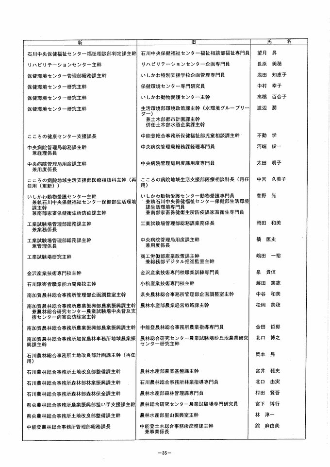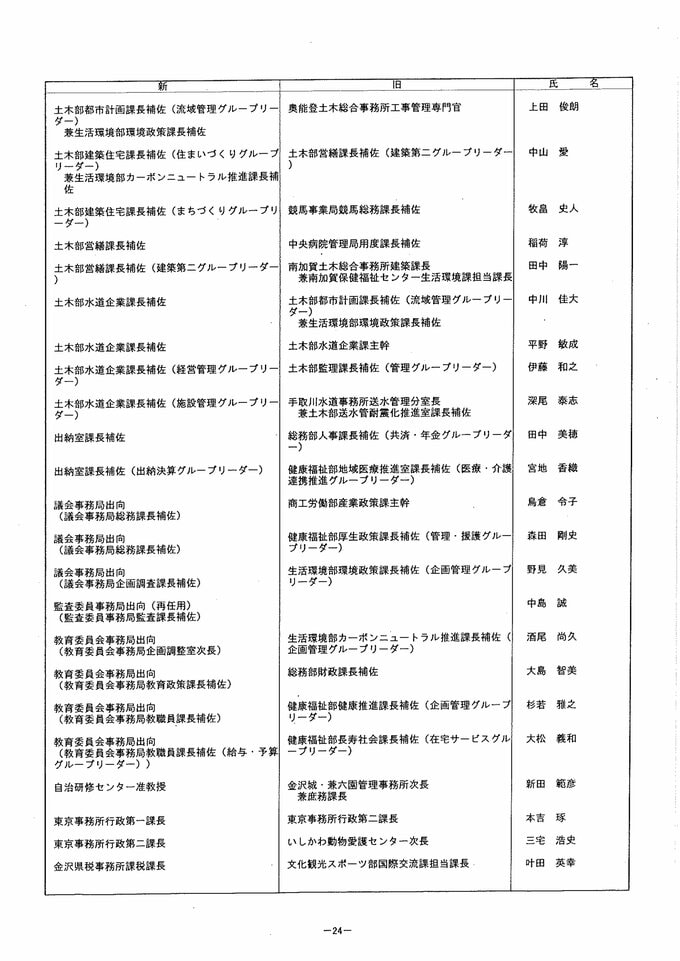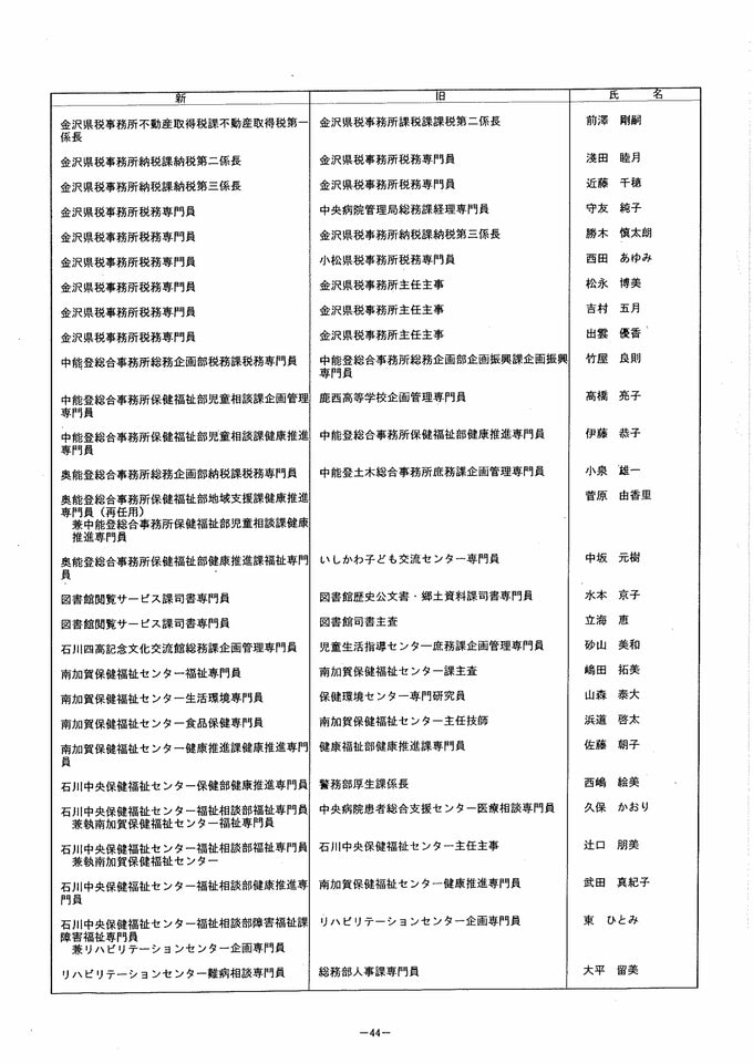 石川県 県職員人事異動 女性管理職が過去最多の15.4% 災害対応力強化へ 危機管理監室を「危機管理部」に改組【2025年度 令和7年度 全員掲載】 2025年3月27日(木) 18:00 石川 【画像】石川県職員の人事異動一覧